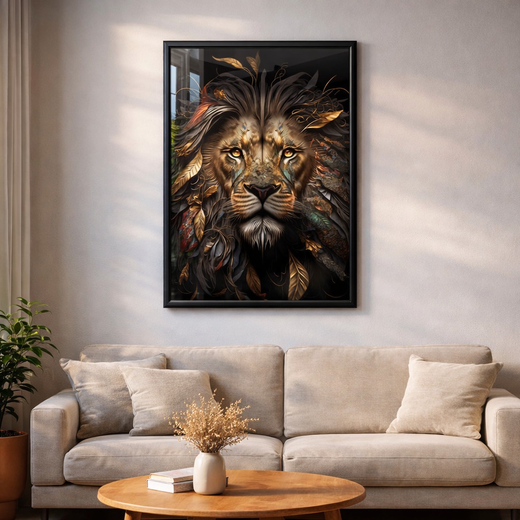 A imagem do leão representa coragem, liderança e poder, tornando essa peça perfeita para quem busca um ambiente inspirador e elegante.